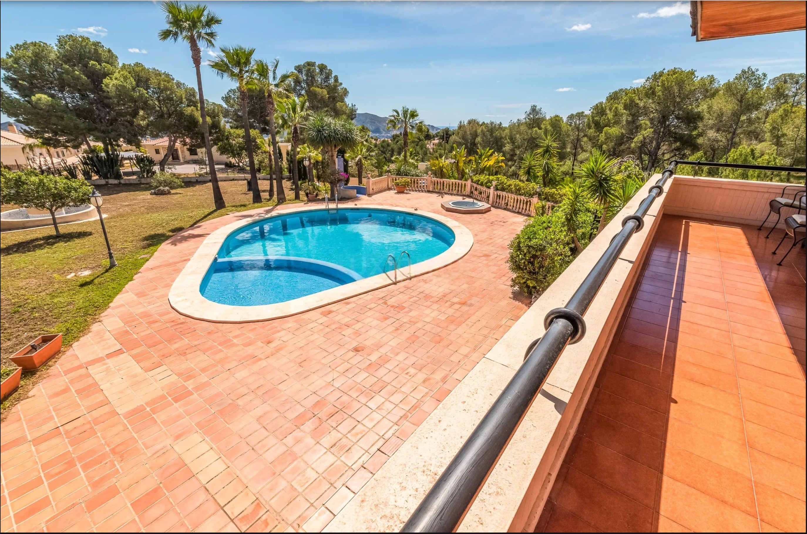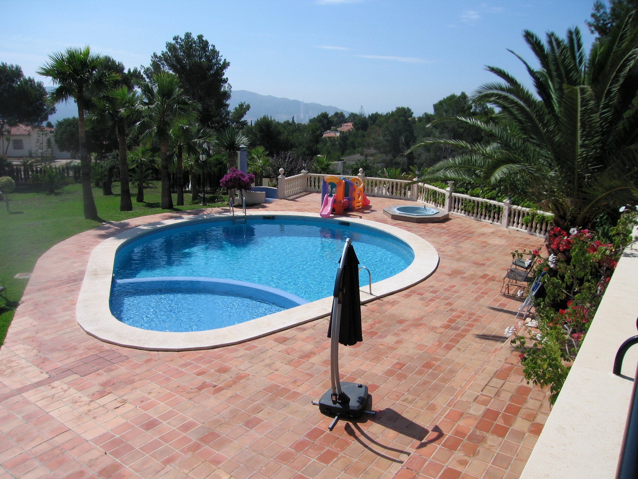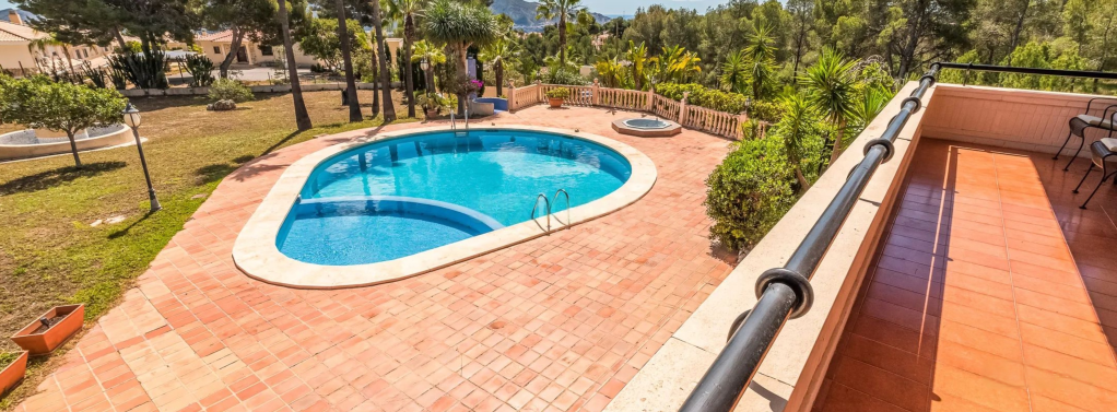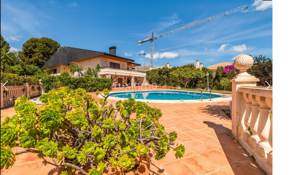 This magnificent property is situated in a private and quiet location next to a large wooded copse just 5 minutes drive from Benidorm in direction La Nucia. The house is of a unique character and is built with the finest materials. The property comprises of 600 square meters and has a private garden of approx 3.450 meters. The house consists of four large double bedrooms with five full bathrooms and a guest toilet. The lounge is 100 square meters in size which together with a very large kitchen and dining area makes up the main floor. A very large swimming pool with children’s area is included. Only six kilometres from the centre of Benidorm and within easy reach of Altea, Albir, Polop, La Nucia, and Alfaz del Pi.