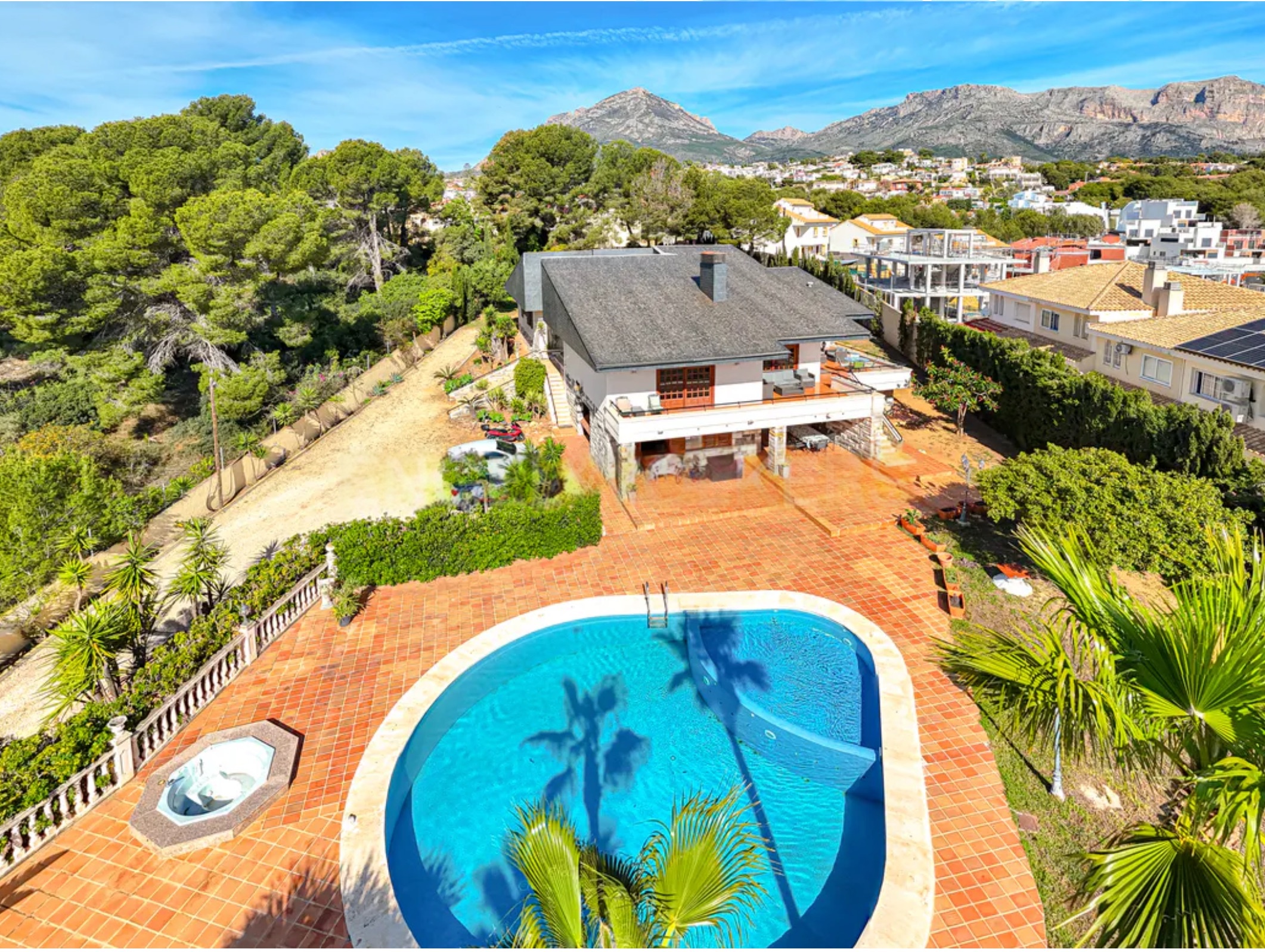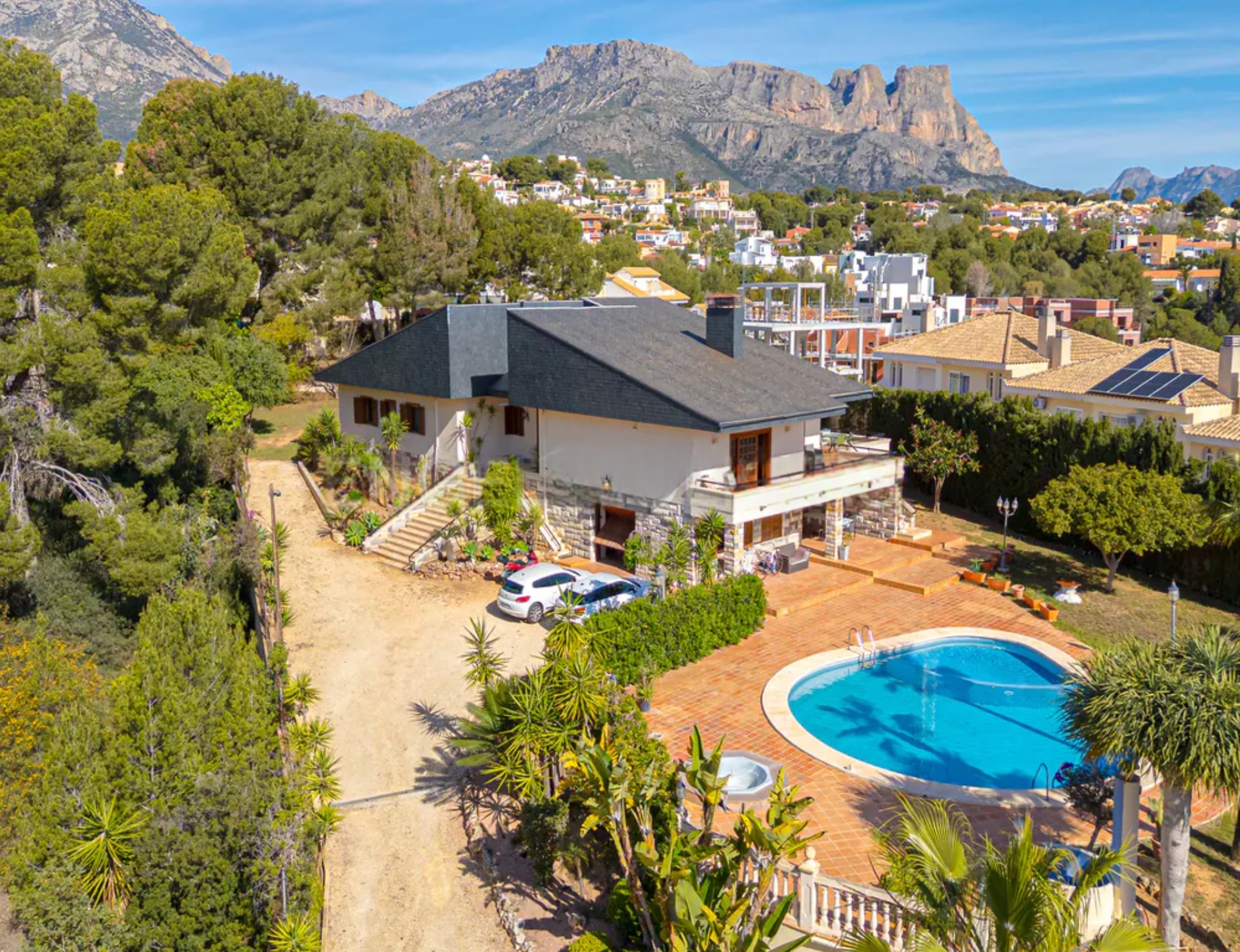 Esta magnífica propiedad está situada en un lugar privado y tranquilo, junta a un bosquecillo que da a la carretera principal de Benidorm (5 minutos) y La Nucia. La casa es de un carácter único y está construida con los mejores materiales. El establecimiento cuenta con 600 metros cuadrados y cuenta con un jardín privado de aproximadamente 3.450 metros. La casa consta de cuatro habitaciones dobles con cinco baños completos y un aseo de invitados. El salón es de 100 metros cuadrados de superficie que, junto con una gran cocina y un comedor conforma la planta principal. Una gran piscina con zona infantil está incluida.